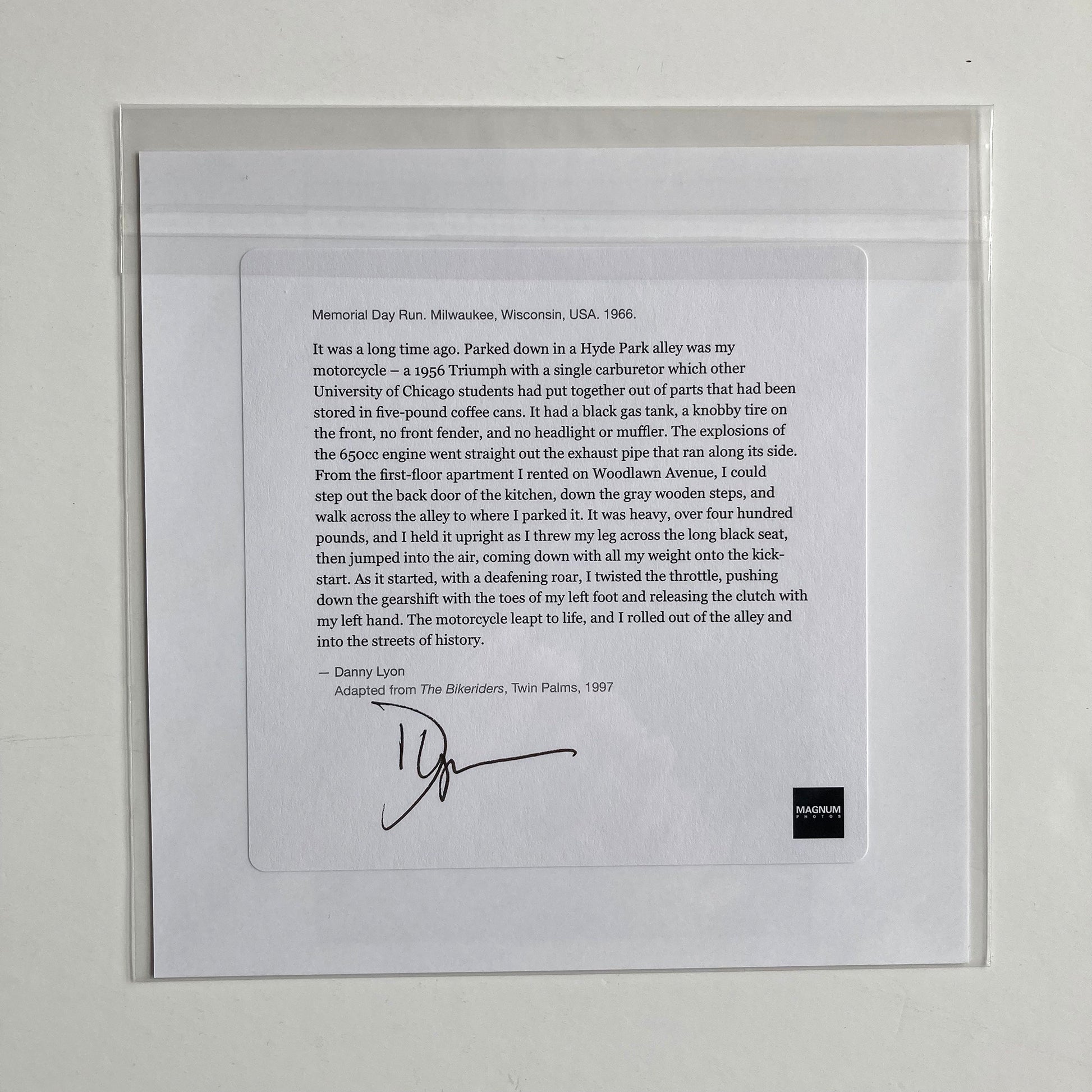 This must be a unique opportunity to buy The Bikeriders hardback book and two Bikeriders prints together... all signed by the legendary photographer Danny Lyon. Very rare!
