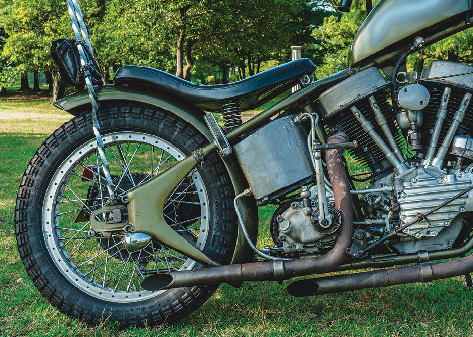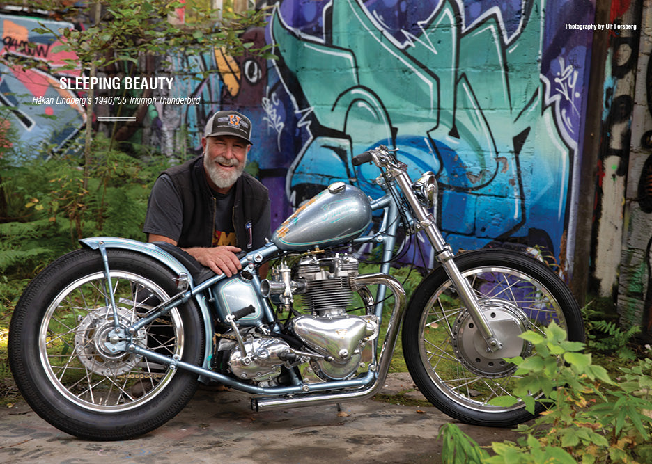 Midwest muscle... Mike Bellomo’s Born Free big twin flathead drag bike! • Troels Madsen’s Knuck chopper has all the cool parts • Paul Hoffman’s ‘57 Panhead was built from boxes of bits to do the miles • A Swedish club bike that doesn’t fit the mould – Billy’s genny Shovel chop • From Japan, Tonny’s tuff Panhead chopper has ‘70s NYC in its DNA • From a garage in Switzerland emerges a sweet ‘48 Pan... Denis tells the story • A NJ survivor pre-unit Triumph chopper?Yep, Dan lucked out with this one • Take two: after a bad wreck,Andy rides again – and so does his Sporty • Joey Cano’s back and his ‘39 Knuck’s as good as you’d expect! • Minty‘46 Triumph from Swedish paint guru Håkan