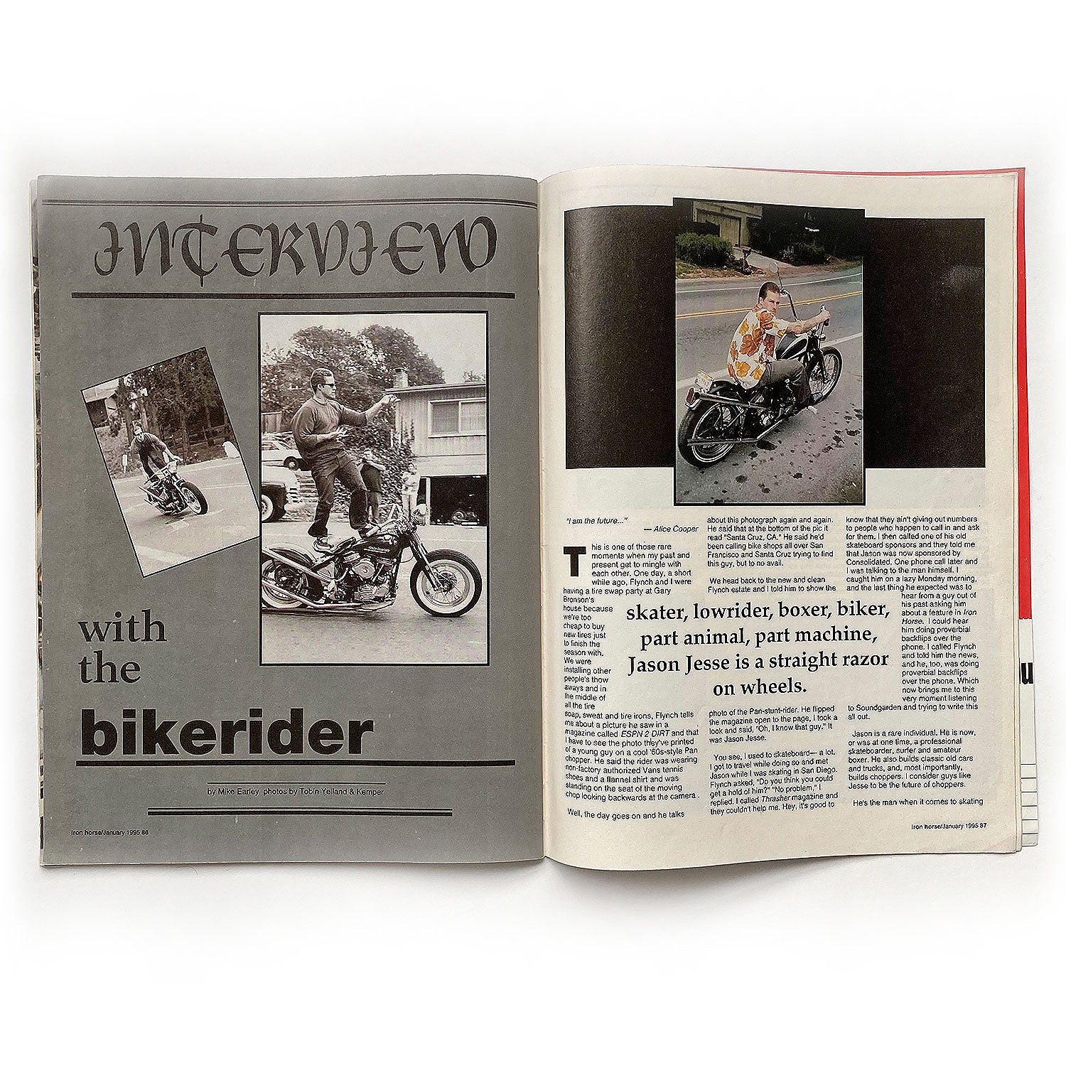 This is RARE! Jason Jessee's first interview with Iron Horse mag from 30 years ago: controversial, with some great iconic photos – including the famous Panhead surfing shot.